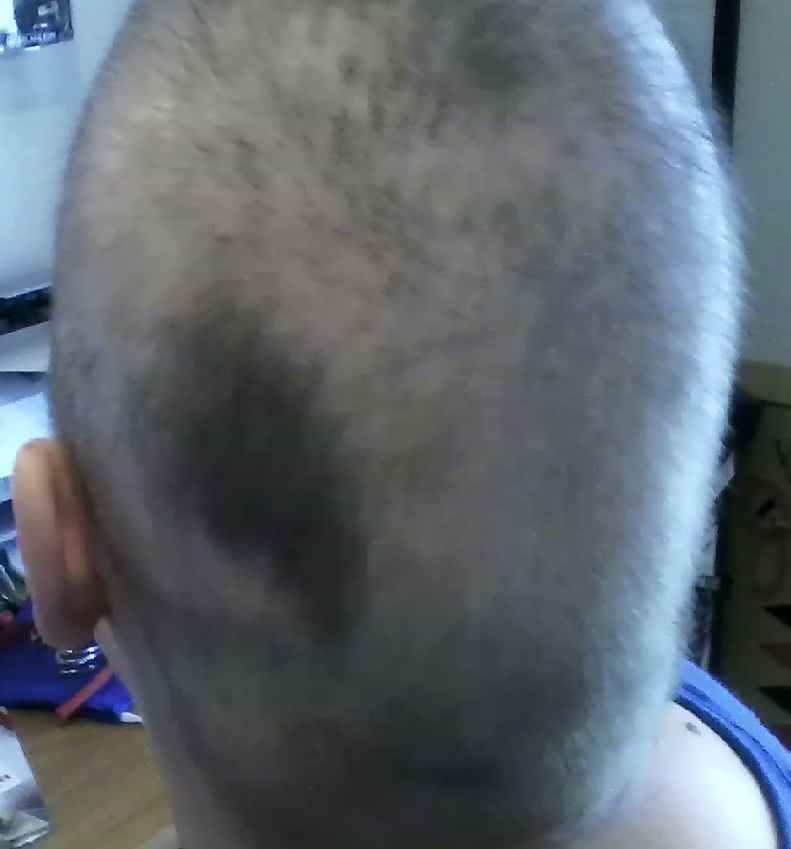 The clippers were nice and inexpensive. By owning the clippers, I could go back over my hair as it was thinning and clip it ever shorter. That certainly made the clipper investment of $20 totally worth it. What I didn’t realize was that not all of the hair would abandon ship at the same rate. Thus, I had an unexpected surprise when I looked at my head in the mirror.