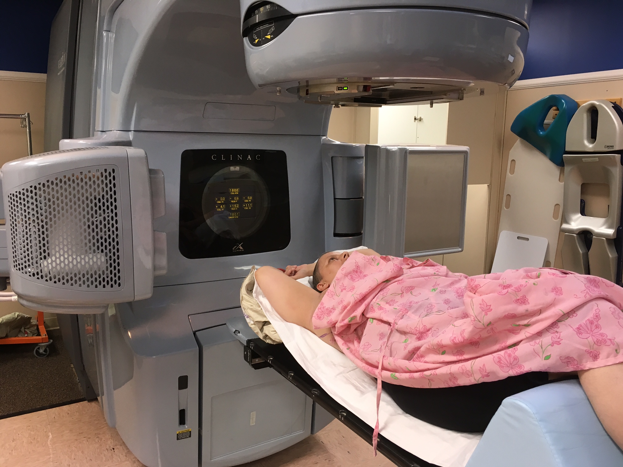 The radiation therapist kindly took an “action” shot.