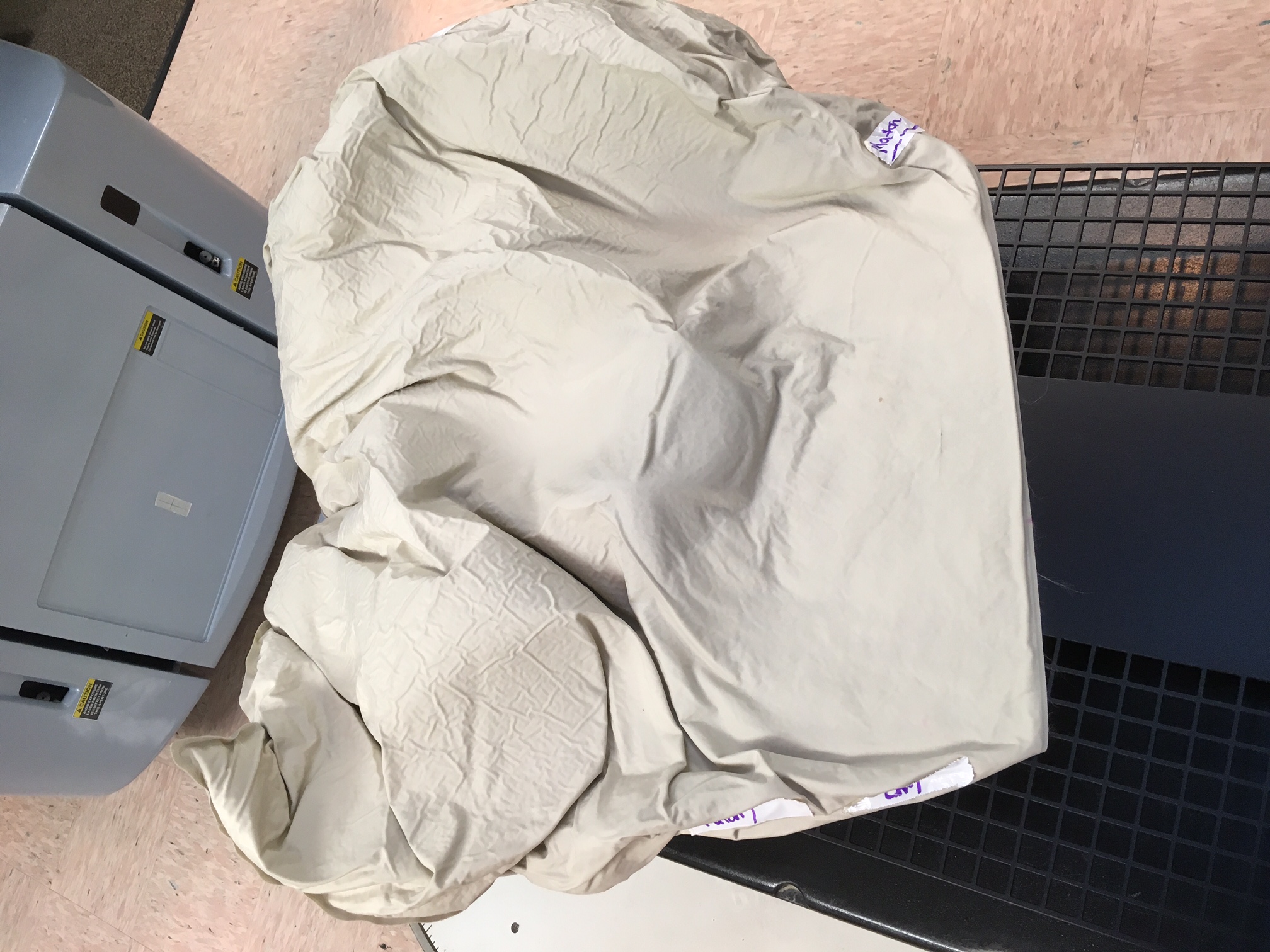 The first part of the preparation was to put me on the machine and create a special mold for my head and arms. This Vac-Lok cushion keeps me in the same position for each treatment. They had me lie down, raise my arms above my head, and turn my head away from the soon-to-be-radioactive breast. They pushed the material around me and hit the vacuum. It doesn’t look fancy, but it does hold me in place. Once I’m done with radiation, they’ll release the vacuum seal, clean it, and it’s ready for the next patient.
